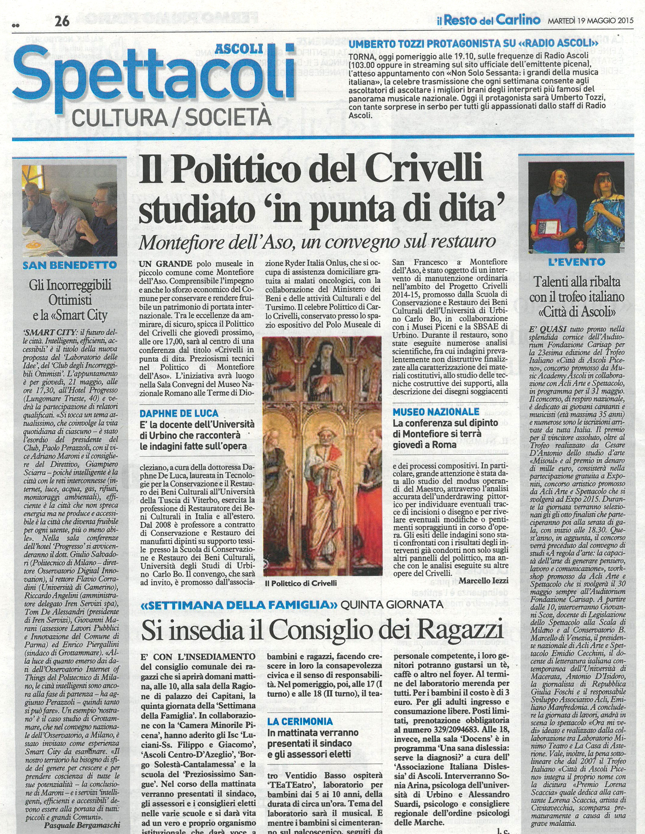 In particolare, per il dipinto della Santa Martire sono stati eseguiti, da Laura Baratin, Giovanni Checcucci e Francesca Gasparetto dei rilievi tridimensionali con il laser scanner per studiare le deformazioni della struttura lignea legate, anche alla movimentazione dell’opera. Questi dati saranno elaborati con sistemi GIS attraverso una metodologia messa a punto da Elvio Moretti e Sara Bertozzi nell’ ambito di alcune ricerche che da anni la Scuola sta portando avanti nel settore dei dipinti su tavola.